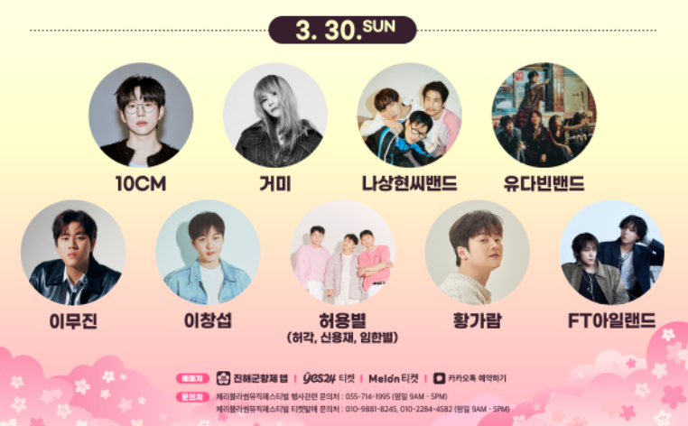 3월 29일(토) 초대가수 라인업
